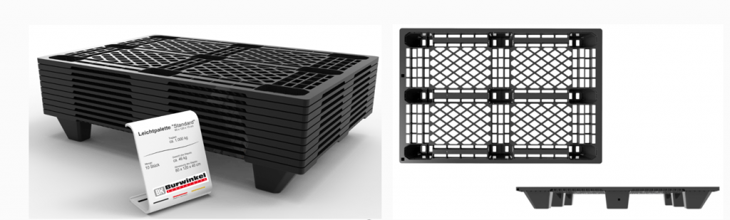 Die umweltfreundlichen ECO-Paletten² von Burwinkel Kunststoffwerk GmbH mit 9 Füßen aus 100% recyceltem Kunststoffmaterial PP-RE