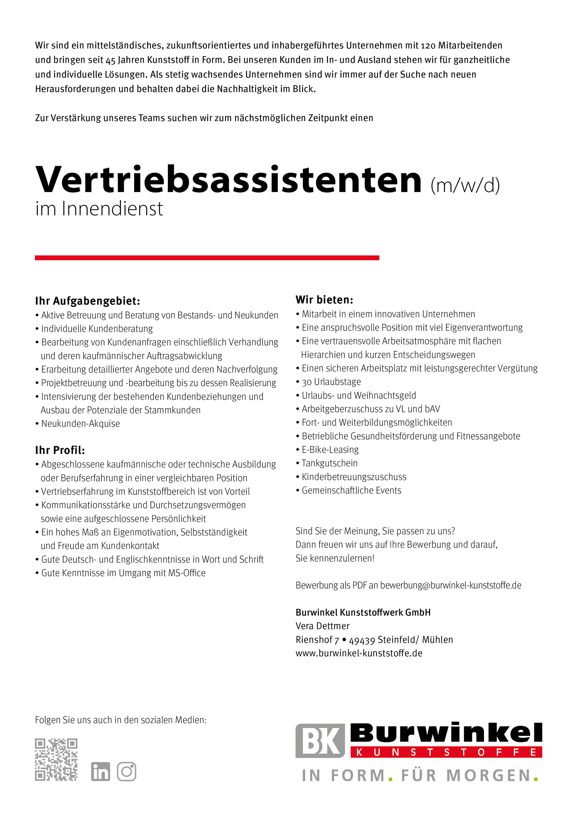 Bewerbung als PDF an bewerbung@shop.burwinkel-kunststoffe.de