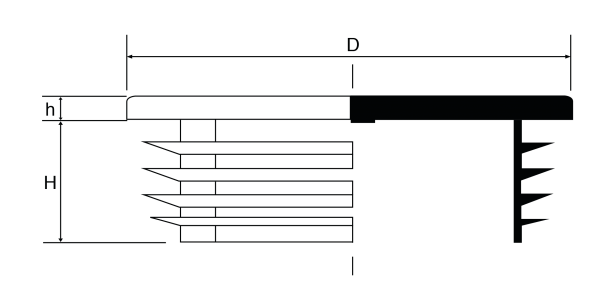 Quadratische Lamellenstopfen zum Verschließen von Profilrohren. Verstärkter Kopfbereich für erhöhte Beanspruchung.